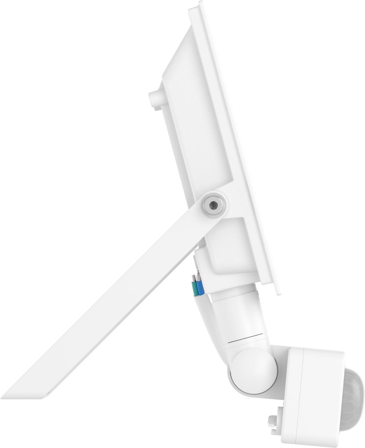 Το περίβλημα του προβολέα είναι κινητό κάθετα σε εύρος 180°. Αυτό επιτρέπει την ακριβή ρύθμιση της κατεύθυνσης της δέσμης φωτός. Χάρη σε αυτή τη ρύθμιση, το φως μπορεί να κατευθυνθεί ακριβώς εκεί που είναι απαραίτητο. Η εγκατάσταση και η ρύθμιση του φωτισμού γίνονται έτσι πολύ άνετες και πρακτικές.