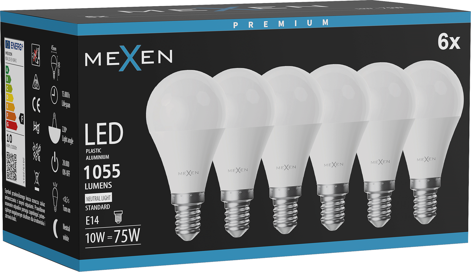 Mexen Nova 6x Λάμπα LED E14, G45, 10W, Ουδέτερη - 4000K, 1055 lm - L101-E14-1040-01x06