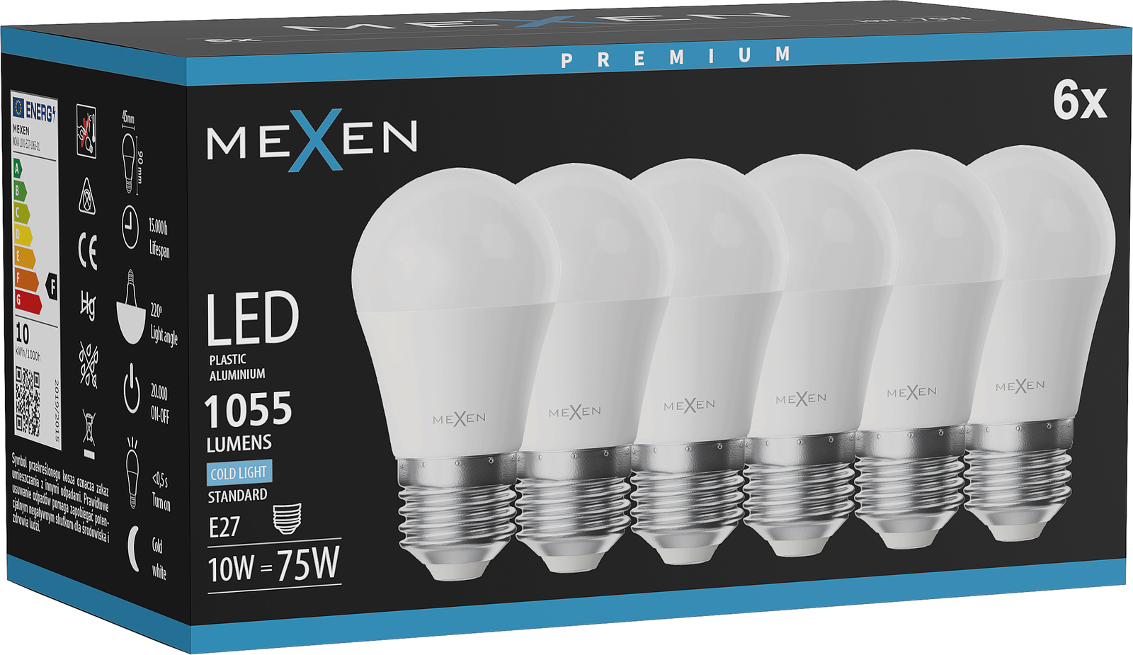 Mexen Nova 6x Λάμπα LED E27, G45, 10W, Ψυχρό - 6500K, 1055 lm - L101-E27-1065-01x06