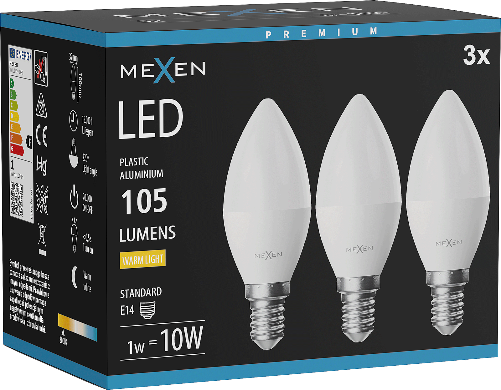 Mexen Nova 3x Λαμπτήρας LED E14, C37, 1W, Ουδέτερος - 4000K, 105 lm - L102-E14-0140-01x03