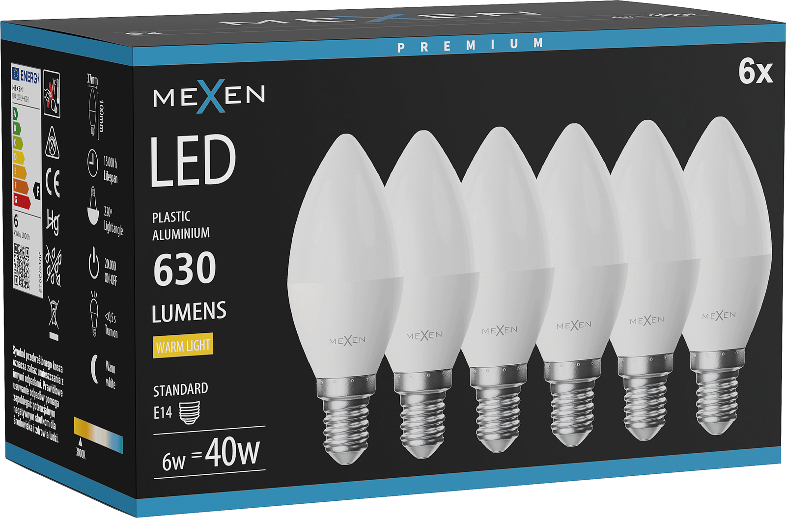 Mexen Nova 6x Λάμπα LED E14, C37, 6W, Θερμή - 3000K, 630 lm - L102-E14-0630-01x06