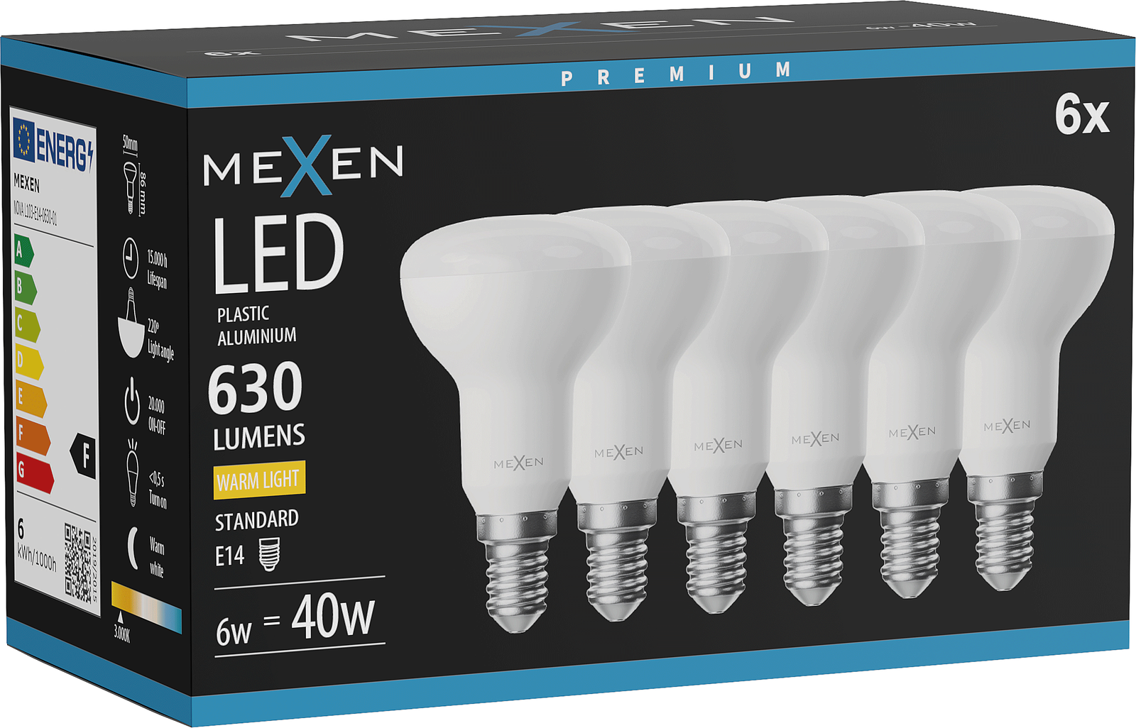 Mexen Nova 6x Λάμπα LED E14, R50, 6W, Θερμή - 3000K, 630 lm - L103-E14-0630-01x06