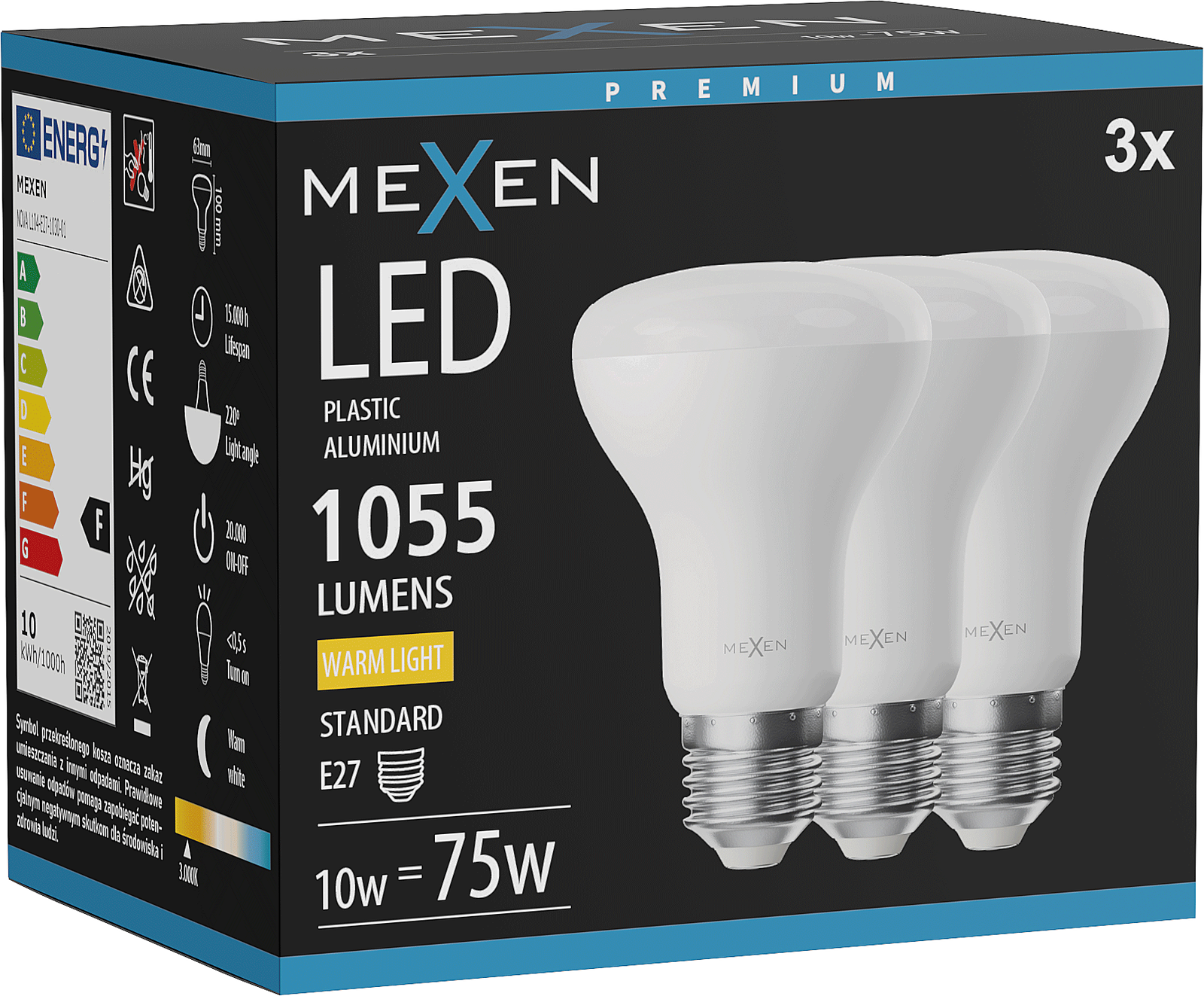 Mexen Nova 3x Λαμπτήρας LED E27, R63, 10W, Ζεστό - 3000K, 1055 lm - L104-E27-1030-01x03