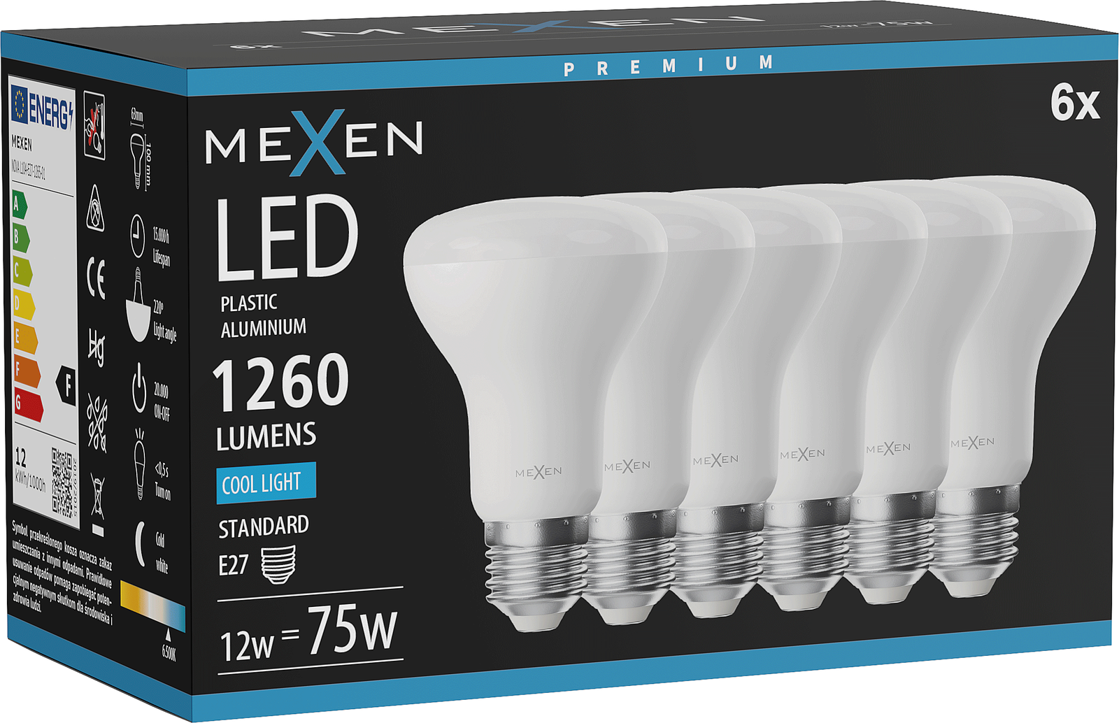 Mexen Nova 6x LED λαμπτήρας E27, R63, 12W, Ψυχρό - 6500K, 1260 lm - L104-E27-1265-01x06