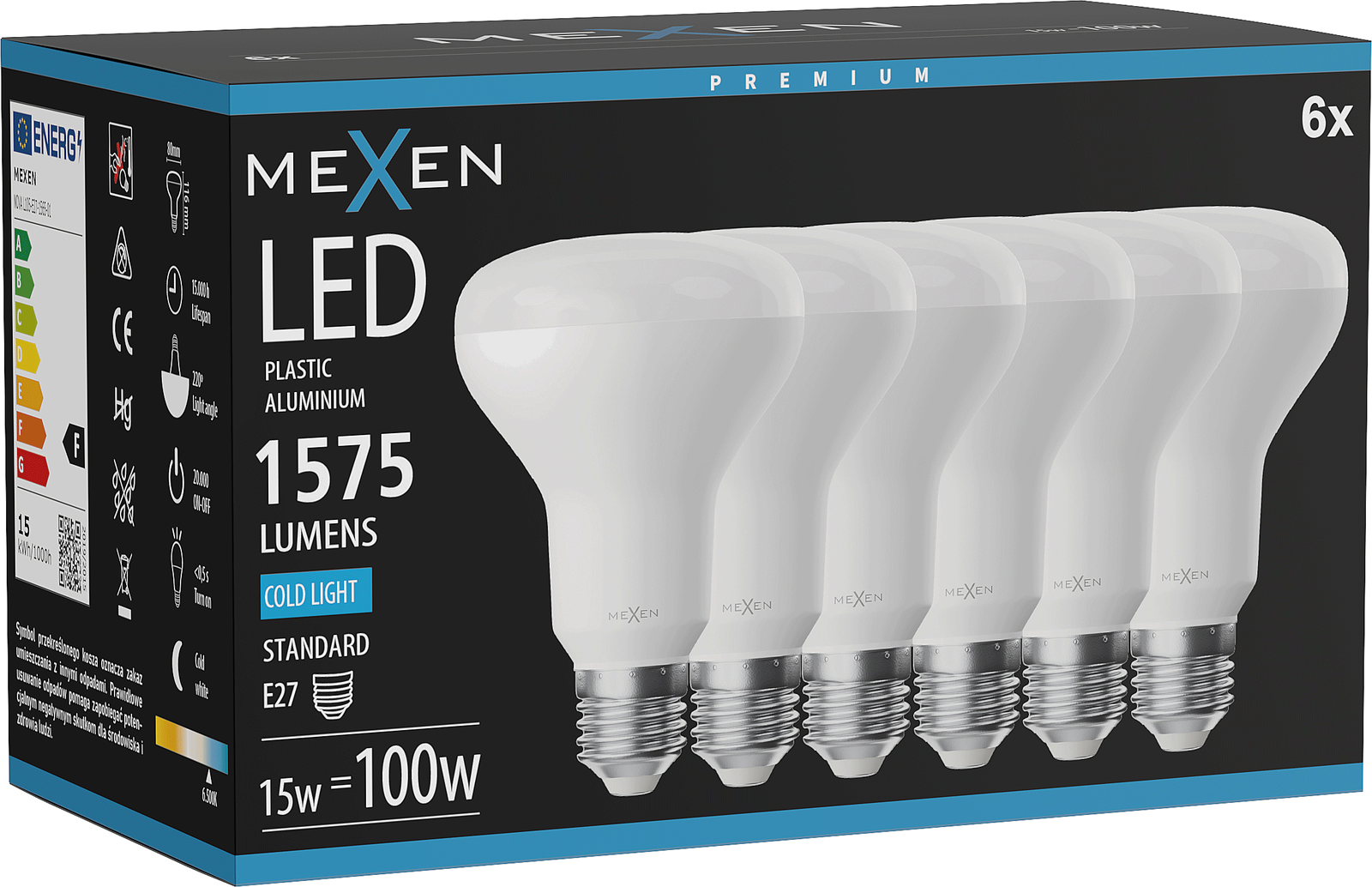 Mexen Nova 6x Λαμπτήρας LED E27, R80, 15W, Ψυχρός - 6500K, 1575 lm - L105-E27-1565-01x06