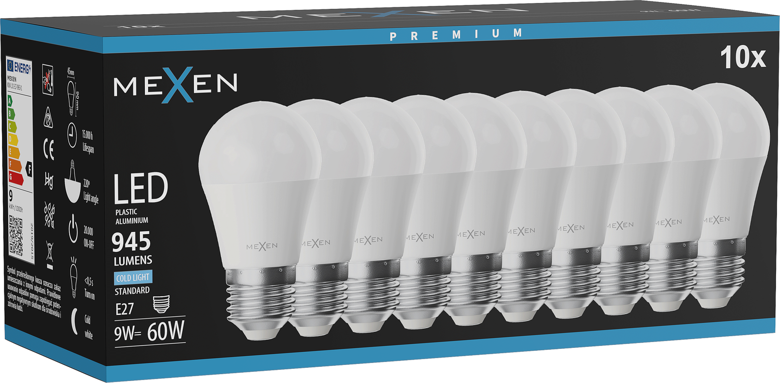 Mexen Nova 10x Λάμπα LED E27, G45, 9W, Ψυχρή - 6500K, 945 lm - L101-E27-0965-01x10