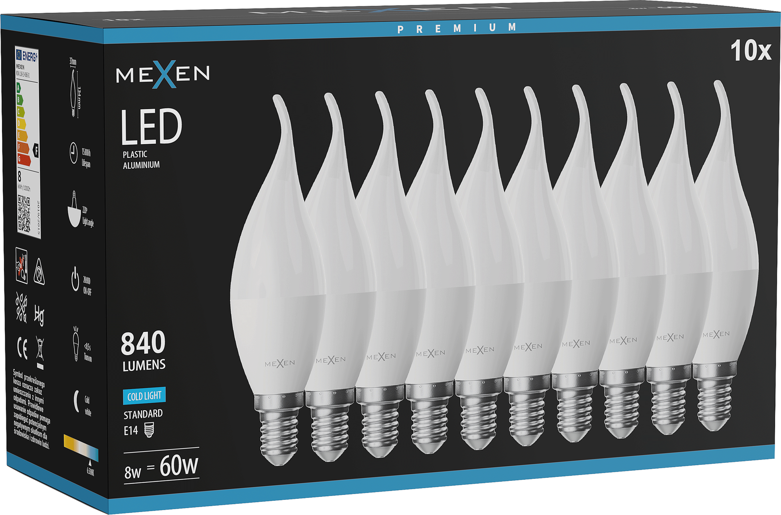 Mexen Nova 10x Λάμπα LED κερί E14, C37, 8W, Ψυχρό - 6500K, 840 lm - L106-E14-0865-01x10