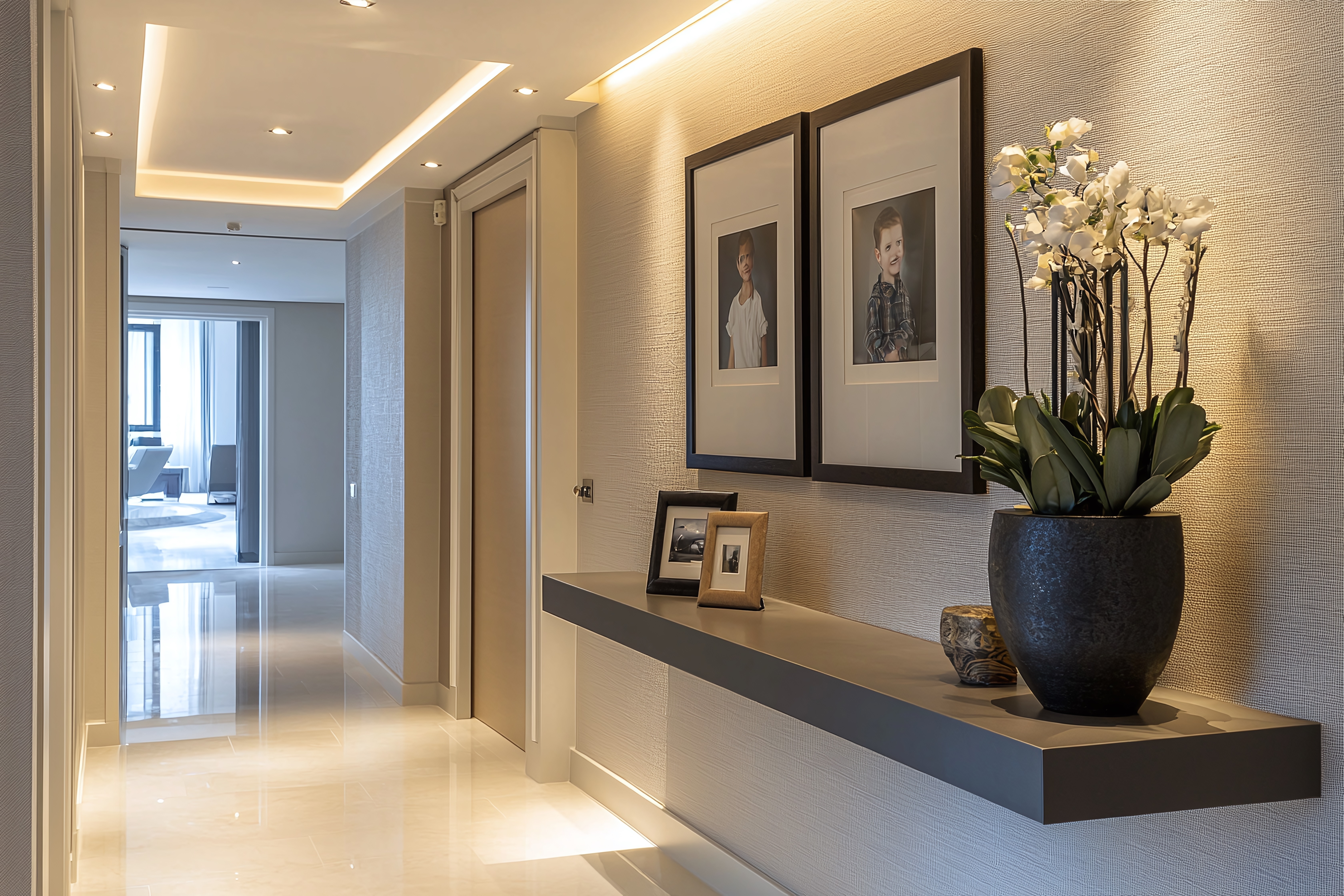 - Σύστημα ελέγχου LED φωτισμού — αν ο διάδρομος είναι μεγάλος, χρησιμοποιήστε δύο διακόπτες αναβάθμισης ώστε να μπορείτε να ανάβετε το φως στην είσοδο και να το σβήνετε στο άλλο άκρο του διαδρόμου. Δημοφιλείς είναι και οι ρυθμιστές φωτεινότητας, καθώς και οι λάμπες με αισθητήρα κίνησης. Διευκολύνουν τη μετακίνηση στο διάδρομο μετά τη δύση του ηλίου.