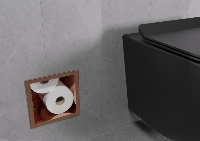Πρέπει να παραδεχτούμε ότι η χειρολαβή για χαρτί υγείας σε ροζ χρυσό χρώμα είναι μία αρκετά ασυνήθιστη πρόταση! Οπότε σε ποιο εσωτερικό θα βρει μία τέτοια πρόταση τη θέση της; Ο ροζ χρυσός μπορεί να συνδυαστεί τολμηρά με τα πιο απλά χρώματα, όπως το μαύρο, το λευκό ή το γκρι. Στη συντροφιά τους, θα ξεχωρίζει και θα τραβάει το βλέμμα. Αναφορικά με τα σχέδια, ο χρώμα αυτός μπορεί να δημιουργήσει ενδιαφέρουσες συνθέσεις με πλακάκια που παρουσιάζουν μωσαϊκές διακοσμήσεις ή που μιμούνται το μάρμαρο. Ένας τέτοιος συνδυασμός θα τραβήξει το ενδιαφέρον κάθε ατόμου! Για να παρουσιάσει το εσωτερικό όσο το δυνατόν καλύτερα, επιλέξτε επίσης άλλα στοιχεία σε αυτόν τον ευφάνταστο χρώμα. Μπορεί να είναι σύστημα ντους, βρύση νιπτύρα ή καθρέφτης, αλλά επίσης μίκρα και απλά αξεσουάρ, όπως δοσοδιανομέας για σαπούνι, κούπα για οδοντόβουρτσες, κεριά ή πετσέτες. Ωστόσο, μην υπερβάλλετε με την ποσότητα των ροζ χρυσών στοιχείων, καθώς αυτό το χρώμα είναι αρκετά έντονο και μπορεί να επιβληθεί στο εσωτερικό. Στη σωστή ποσότητα, θα σας επιτρέψει να δημιουργήσετε ένα μοναδικό και μοναδικό μπάνιο που θα αρέσει σε κάθε άτομο!